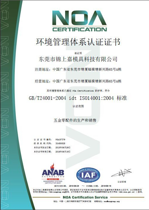 環(huán)境管理體系認證證書
